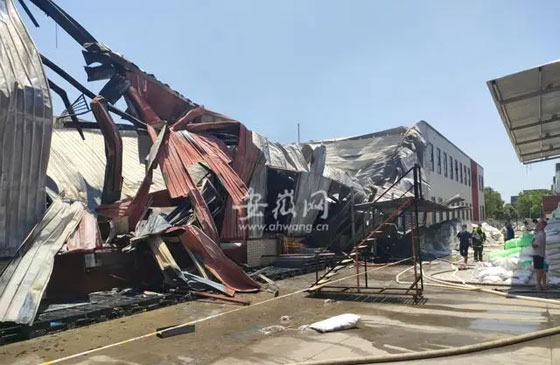 6月15日中午,記者趕到事發(fā)現(xiàn)場時(shí),火勢已經(jīng)被消防人員撲滅。起火公司名稱為合肥盛皓保溫材料有限公司,該公司的生產(chǎn)車間發(fā)生大火,現(xiàn)場的消防人員正在進(jìn)行火災(zāi)的收尾清理工作。在車間東邊和南邊的園區(qū)道路上,停著五六輛消防車,還有一輛合肥燃?xì)鈸屝捃?,合肥燃?xì)夤ぷ魅藛T也趕到現(xiàn)場進(jìn)行安全隱患排查工作。